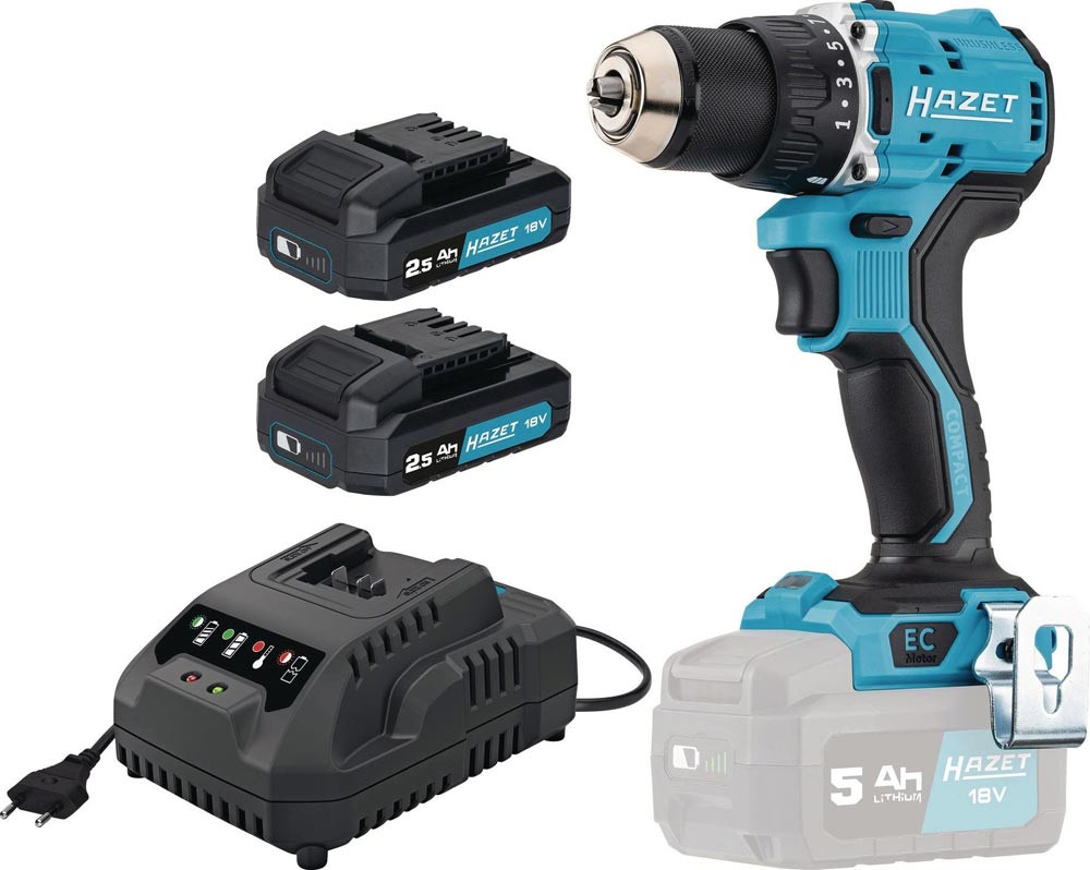 kompakter, leistungsstarker Bohrschrauber mit extrem kurzer Kopflänge ∙ Schnellspann-Bohrfutter ∙ Metallausführung ∙ Auto Lock Funktion ∙ maximaler Bohrerdurchmesser: 13 mm ∙ elektronische Schnellbremse ∙ Rechts- / Linkslauf mit Einschaltsperre ∙ ergonomischer rutschfest gummierter Griff ∙ LED-Licht mit Nachleuchtfunktion ∙ Gürtelclip und Bitgarage ∙ Anzahl Drehmomentstufen: 18 + 1 ∙ LED-Akku Kapazitätsanzeige am Akku Pack ∙ kompatibel mit allen 18 Volt Akku Packs der Serie 9500 ∙ bürstenloser Gleichstrommotor (BLDC): höhere Standzeit, geringer Verschleiß, kein Wechsel der Kohlebürsten erforderlich ∙ hoher Wirkungsgrad und damit geringerer Akkuverbrauch – kompakterer Motor ermöglicht geringere Baumaße ∙ Electronic Management System (EMS)