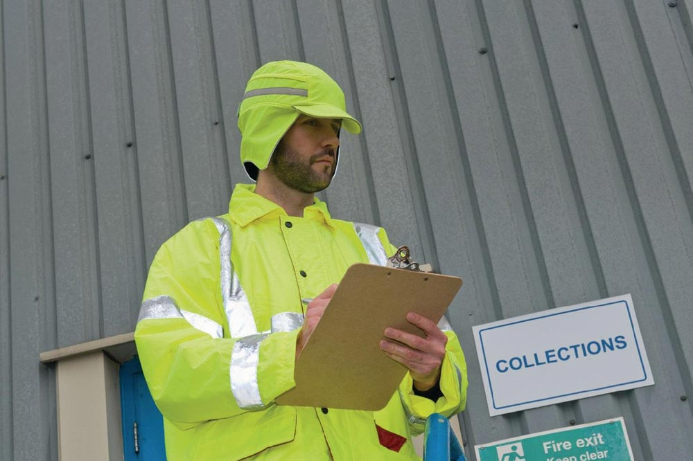 nach EN 812:A1 und EN 471 · bietet Schutz vor nassen und kalten Witterungsverhältnissen, da das wasserdichte und atmungsaktive Außenmaterial die Nässe abhält, ohne zu Überhitzung zu führen · Signalfarben und rundum laufendes Reflexmaterial stellen sicher, dass Arbeiter bei allen Licht- und Wetterverhältnissen gut zu sehen sind · Größe 52-65 cm