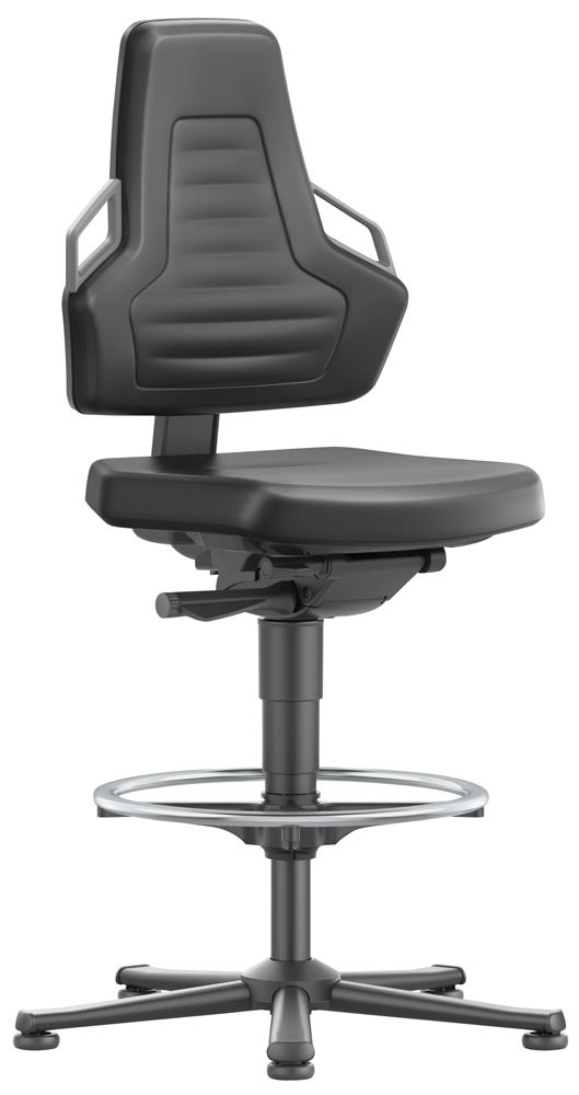 Arbeitsdrehstuhl mit autom. Gewichtregulierung, Sitz Kunstleder schwarz, Griffe grau, Gleiter u. Fußring, Sitz Höhe 570-820 mm
