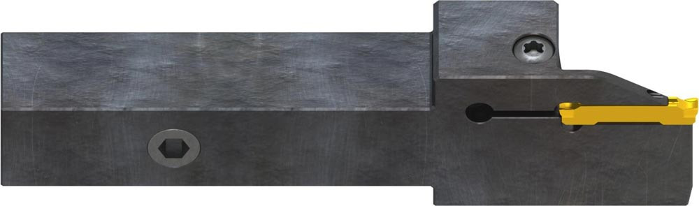 GL3-A2020KFL-24-80 ist ein linker Außendrehhalter mit Innenkühlung für GL Wendeschneidplatten. Geeignet zum Radialstechen · Abstechen · Drehen und Profilieren.Für längere Standzeiten und weniger Vibrationen ist der Körper verstärkt. Körper für längere Standzeit oberflächenbehandelt.