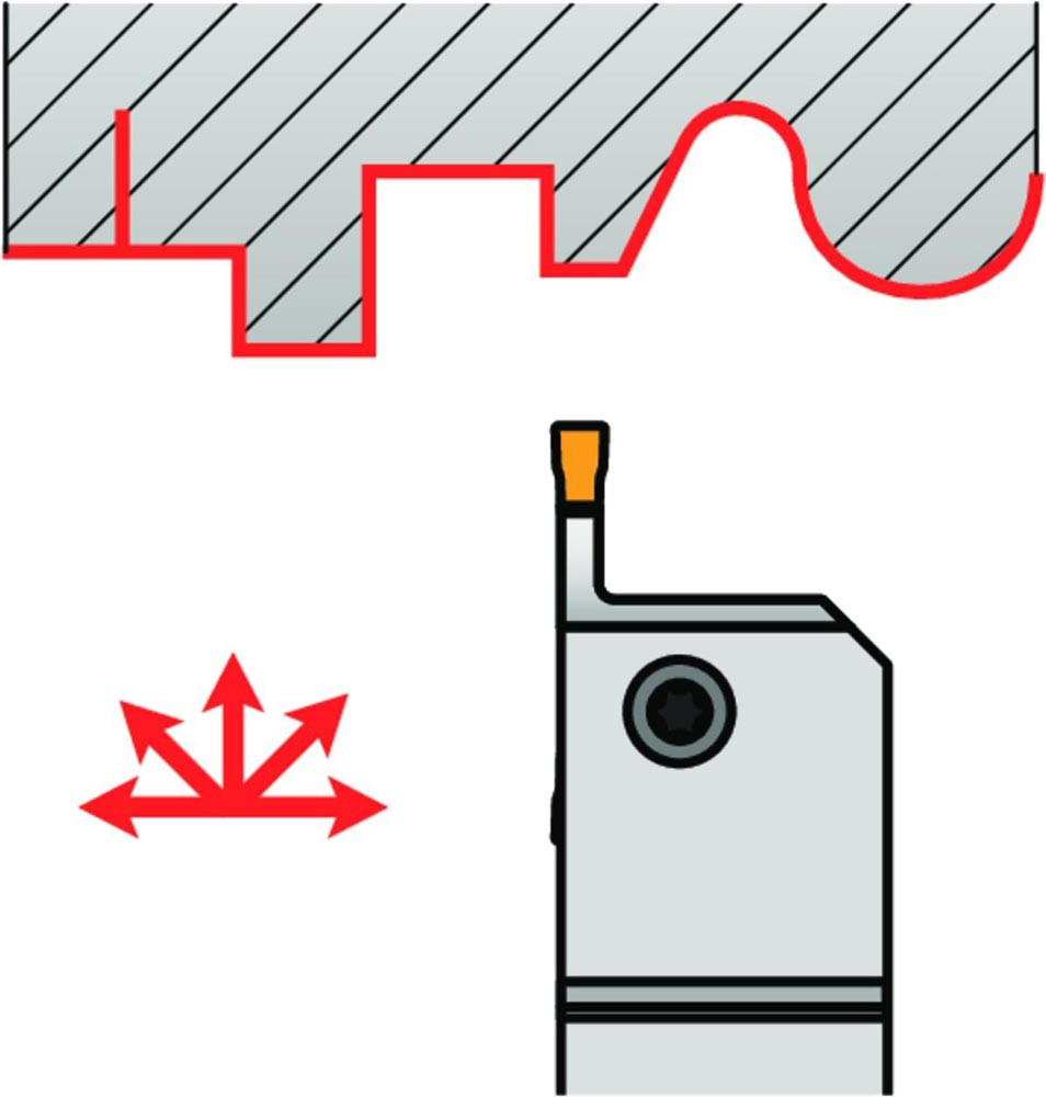 GL5-S2525MFR-12 ist ein rechter Außendrehhalter für GL Wendeschneidplatten. Am besten geeignet für das Längsdrehen und zum Profilieren aber auch zum Ein- und Abstechen.Körper für längere Standzeit oberflächenbehandelt.