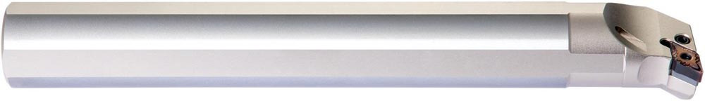 Dreh-Bohrstange mit Kniehebelklemmung zum spannen von 55° Rhombus negative Wendeschneidplatten mit einem Innenkreisdurchmesser von 15.875mm · 6.35mm Dick (ISO Bezeichnung DN.. 1506.. ) · linke Ausführung zum 93° Längsdrehen mit abgesetzem Schaft · Stahl mit Kühlkanalbohrung · 40mm Durchmesser x 300mm Länge für Innenkegeldrehen · Kopierdrehen in einer und mehreren Richtungen und Längsdrehen mit und ohne Schulter