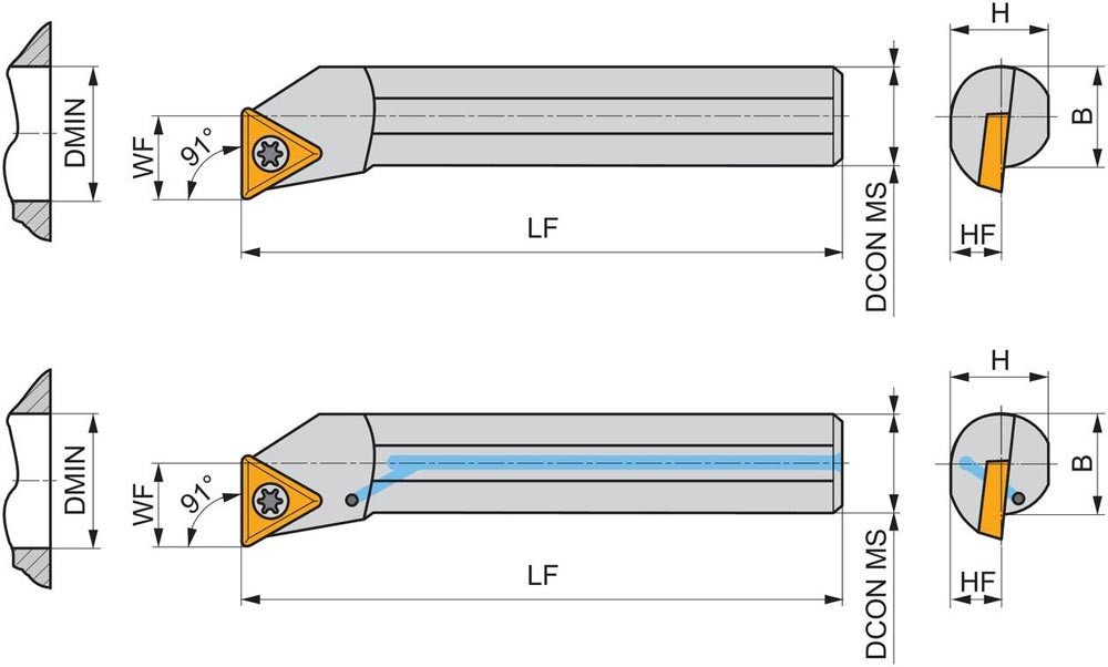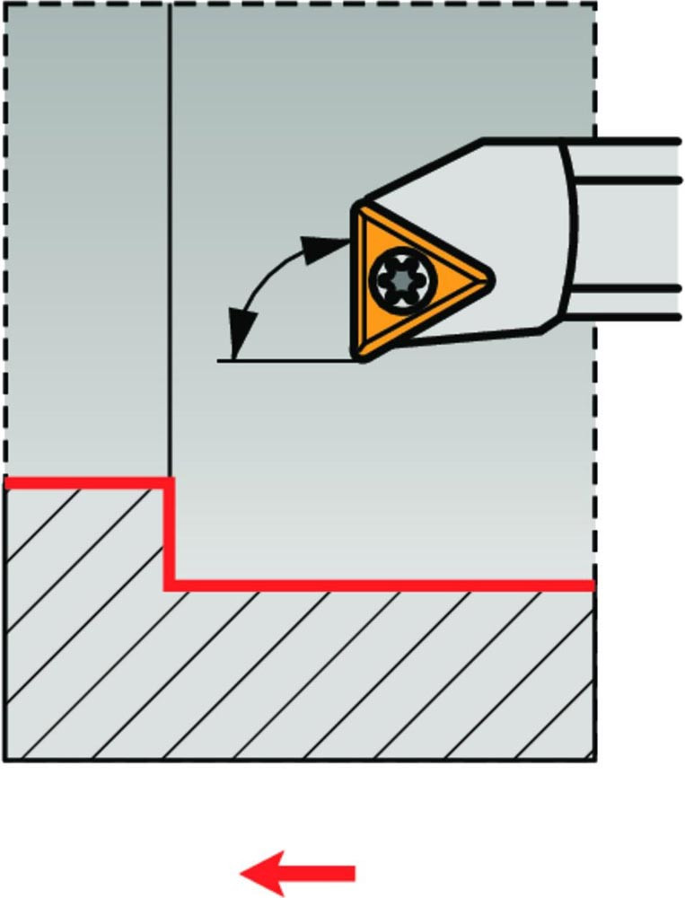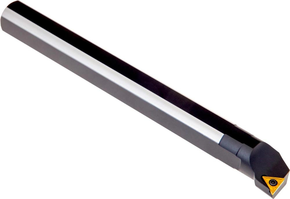 Dreh-Bohrstange mit Schraubklemmung zum spannen von Triangular positive Wendeschneidplatten mit einem Innenkreisdurchmesser von 6.35mm · 2.38mm Dick (ISO Bezeichnung TC.. 1102.. ) · linke Ausführung zum 90° Längsdrehen mit abgesetzem Schaft · Stahl ohne Kühlkanalbohrung · 12mm Durchmesser x 125mm Länge für Innenkegeldrehen und Längsdrehen mit und ohne Schulter