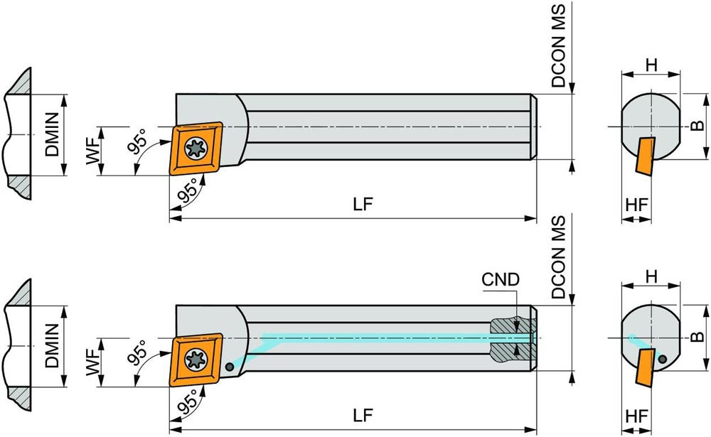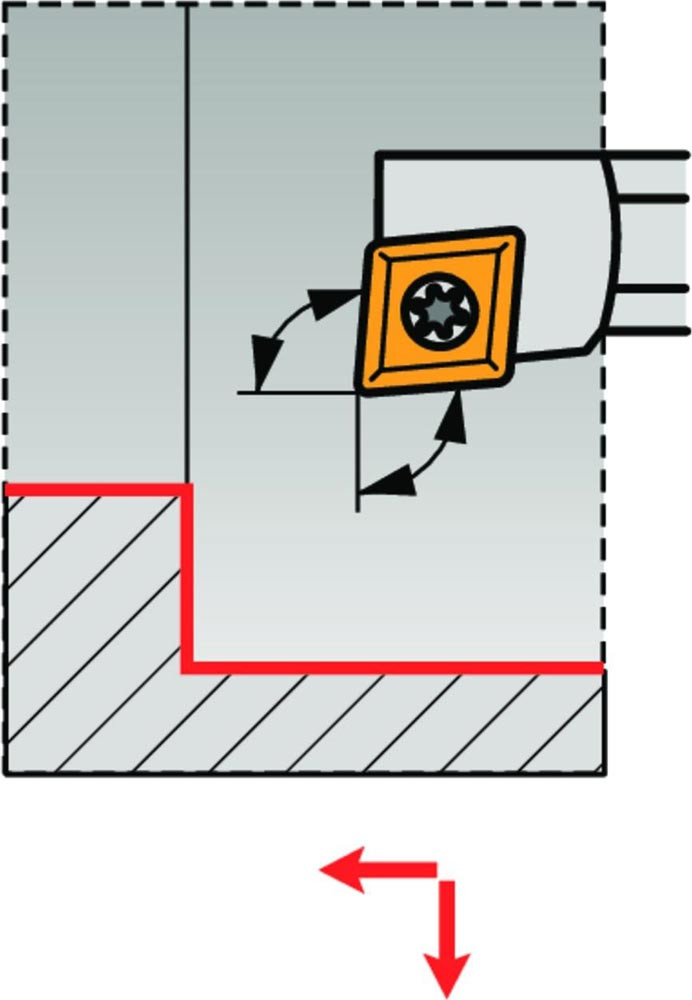Dreh-Bohrstange mit Schraubklemmung zum spannen von 80° Rhombus positive Wendeschneidplatten mit einem Innenkreisdurchmesser von 12.7mm · 4.76mm Dick (ISO Bezeichnung CC.. 1204.. ) · rechte Ausführung zum 95° Stirn-und Längsdrehen mit abgesetzem Schaft · Stahl ohne Kühlkanalbohrung · 32mm Durchmesser x 350mm Länge für Innenkegeldrehen und Längsdrehen mit und ohne Schulter