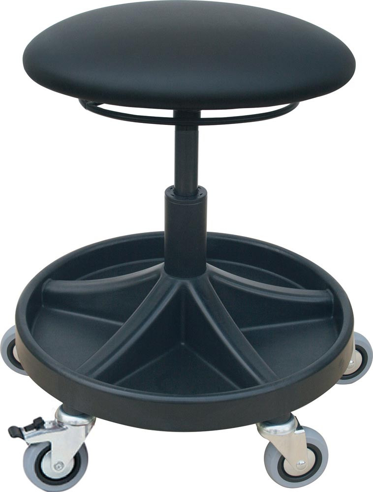 Sitz: Polster anthrazit · Sitzhöhenverstellung mittels Gasdruckfeder und Ringauslösung · Fuß: 5-fach unterteilte Werkzeugschale aus Kunststoff, Rollen mit 2 Feststellern · Gewicht: 7,9 kg