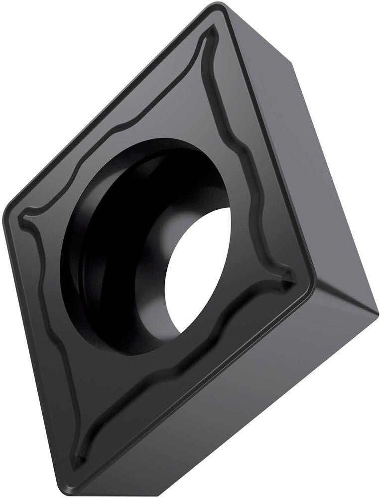 Einseitige positive Drehwendeschneidplatte · 80° Rhombisch mit 7° Freiwinkel · Innenkreisdurchmesser von 9.525mm · 3.97mm Dick · 0.4mm Radius · Indexgenauigkeit nach ISO-Toleranzklasse-M · Spanbrecher FM2 mit verrundeter Schneidkante · im Substrat T6310 · PVD beschichtet WC-Co Feinstkornsubstrat in den ISO-Bereichen P01 -P15 und K05 -K20 · zum schlichten bis medium bearbeiten von Stählen und Gusseisen