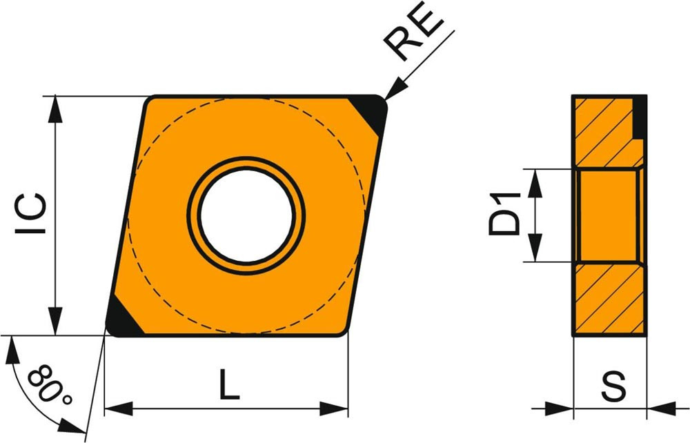 · Formcode Wendeschneidplatte: C - rhombischer 80° eingeschlossener Winkel