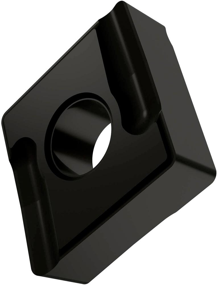 Doppelseitige negative Drehwendeschneidplatte · 80° Rhombisch mit Innenkreisdurchmesser von 12.7mm · 4.76mm Dick · 0.8mm Radius · Indexgenauigkeit nach ISO-Toleranzklasse-M · Spanbrecher SI mit verrundeter Schneidkante · im Substrat T9325 · MT-CVD beschichtet functionally graded WC-Co carbide in den ISO-Bereichen P15 -P35 und M10 -M30 · zum medium bis schruppen bearbeiten von Stählen und nichtrostenden Stählen mit einem linksschneidendem Werkzeug