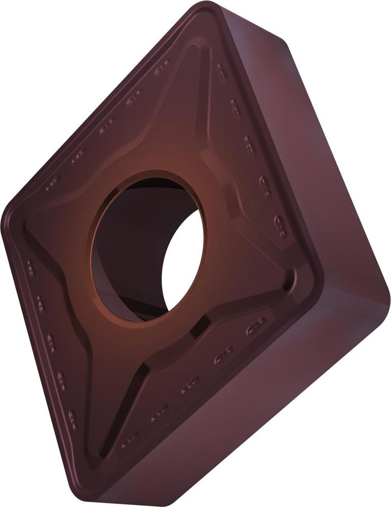 Doppelseitige negative Drehwendeschneidplatte · 80° Rhombisch mit Innenkreisdurchmesser von 19.05mm · 6.35mm Dick · 1.6mm Radius · Indexgenauigkeit nach ISO-Toleranzklasse-M · Spanbrecher RM mit verrundeter Schneidkante · im Substrat T8430 · PVD beschichtet WC-Co Feinkornsubstrat in den ISO-Bereichen P20 -P40 und M20 -M35 · zum medium bis schruppen bearbeiten von Stählen und nichtrostenden Stählen