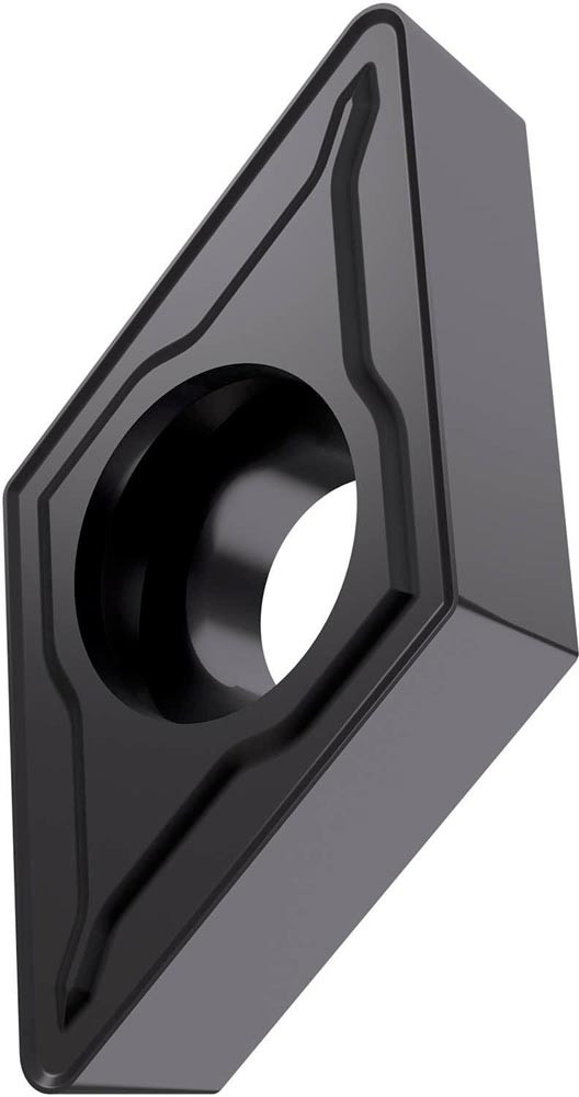 Einseitige positive Drehwendeschneidplatte · 55° Rhombisch mit 7° Freiwinkel · Innenkreisdurchmesser von 6.35mm · 2.38mm Dick · 0.4mm Radius · Indexgenauigkeit nach ISO-Toleranzklasse-M · Spanbrecher FM2 mit verrundeter Schneidkante · im Substrat T6310 · PVD beschichtet WC-Co Feinstkornsubstrat in den ISO-Bereichen P01 -P15 und K05 -K20 · zum schlichten bis medium bearbeiten von Stählen und Gusseisen