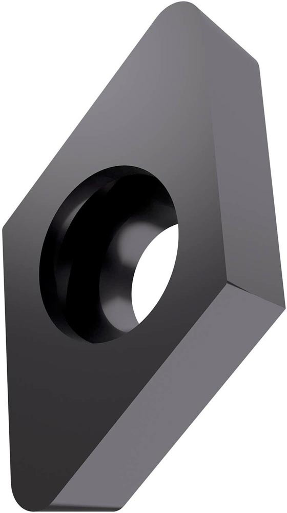 Einseitige positive Drehwendeschneidplatte · 55° Rhombisch mit 7° Freiwinkel · Innenkreisdurchmesser von 9.525mm · 3.97mm Dick · 0.8mm Radius und Indexgenauigkeit nach ISO-Toleranzklasse-M · im Substrat T6310 · PVD beschichtet WC-Co Feinstkornsubstrat im ISO-Bereich K05 -K20 · zum schlichten bis medium bearbeiten von Gusseisen
