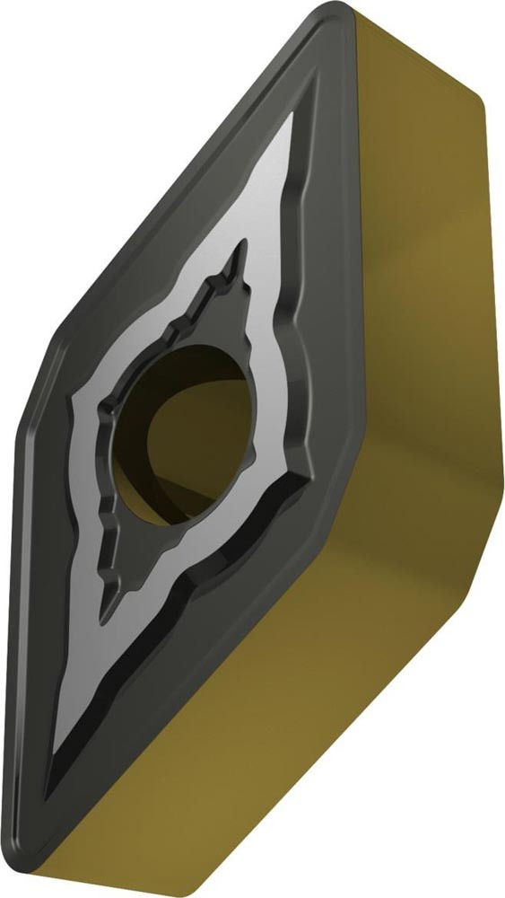 Doppelseitige negative Drehwendeschneidplatte · 55° Rhombisch mit Innenkreisdurchmesser von 9.525mm · 4.76mm Dick · 0.8mm Radius · Indexgenauigkeit nach ISO-Toleranzklasse-M · Spanbrecher NMR mit verrundeter Schneidkante · im Substrat T9415 · MT-CVD beschichtet WC-Co Substrat im ISO-Bereich P05 -P30 · zum schlichten bis schruppen bearbeiten von Stählen