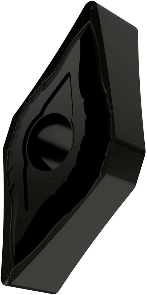 Doppelseitige negative Drehwendeschneidplatte · 55° Rhombisch mit Innenkreisdurchmesser von 12.7mm · 6.35mm Dick · 0.4mm Radius · Indexgenauigkeit nach ISO-Toleranzklasse-M · Spanbrecher SF mit verrundeter Schneidkante · im Substrat T7325 · MT-CVD beschichtet functionally graded WC-Co carbide in den ISO-Bereichen M10 -M25 und S10 -S25 · zum schlichten bis medium bearbeiten von nichtrostenden Stählen und Superlegierungen