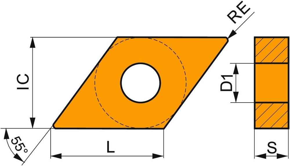 · Formcode Wendeschneidplatte: D - rhombischer 55° eingeschlossener Winkel