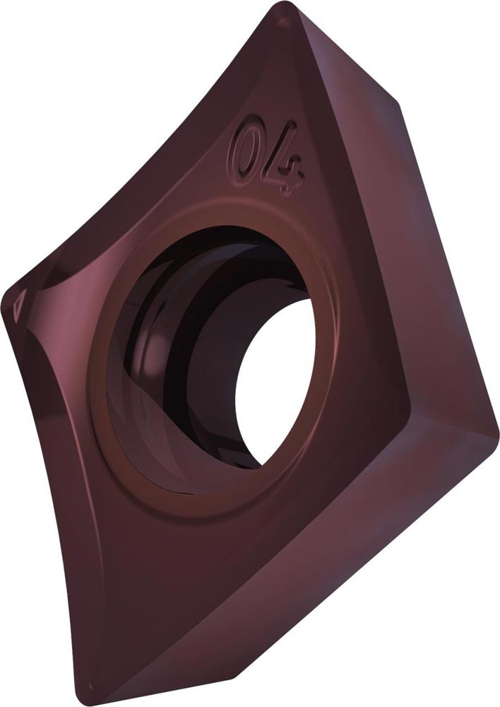 Einseitige positive Drehwendeschneidplatte · 75° Rhombisch mit 7° Freiwinkel · Innenkreisdurchmesser von 6.35mm · 2.38mm Dick · 0.2mm Radius · Indexgenauigkeit nach ISO-Toleranzklasse-G · Spanbrecher SF3 mit verrundeter Schneidkante · im Substrat T8415.