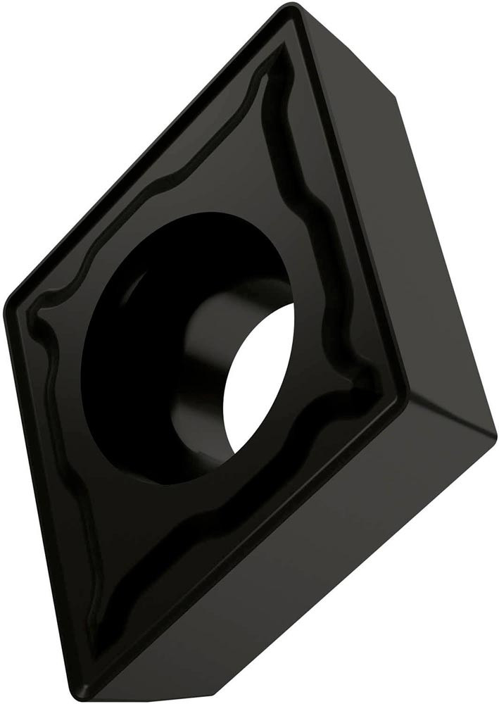 Einseitige positive Drehwendeschneidplatte · 75° Rhombisch mit 7° Freiwinkel · Innenkreisdurchmesser von 6.35mm · 2.38mm Dick · 0.4mm Radius · Indexgenauigkeit nach ISO-Toleranzklasse-M · Spanbrecher FM2 mit verrundeter Schneidkante · im Substrat T8430 · PVD beschichtet WC-Co Feinkornsubstrat im ISO-Bereich P20 -P40 · zum schlichten bis medium bearbeiten von Stählen