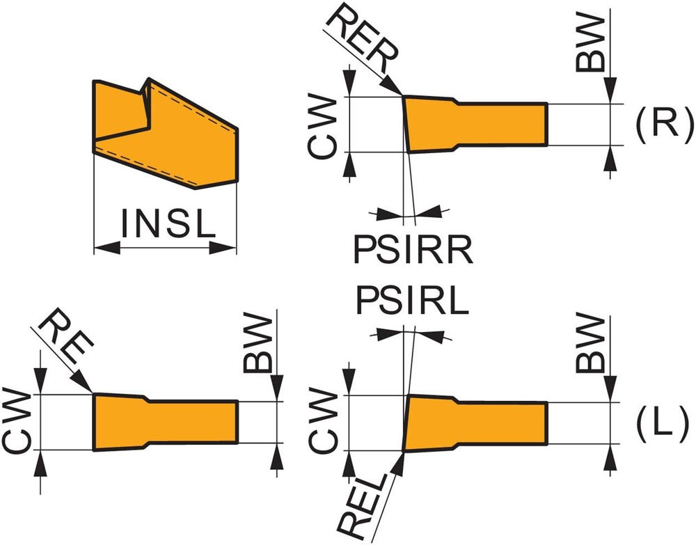 Einseitige Ein-und Abstech Wendeschneidplatte · mit einer 3mm Schnittbreite und einem 0.2mm Eckenradius · 5° Schneidenwinkel zur Reduktion von Druck und Grat auf der linken Seite · eine Genauigkeit nach Toleranzklasse U und einem facettierter Schneidkante · Substrat T8330 PVD beschichtetes Feinstkorn WC-Co Hartmetall im ISO-Substrats-Bereich P25-P40 und K20-K40 zur Bearbeitung von Stahl und Guss in Kombination mit DORMER PRAMET XLCFN 03 und XLCF(RL) 03 Ein-und Abstechwerkzeugen