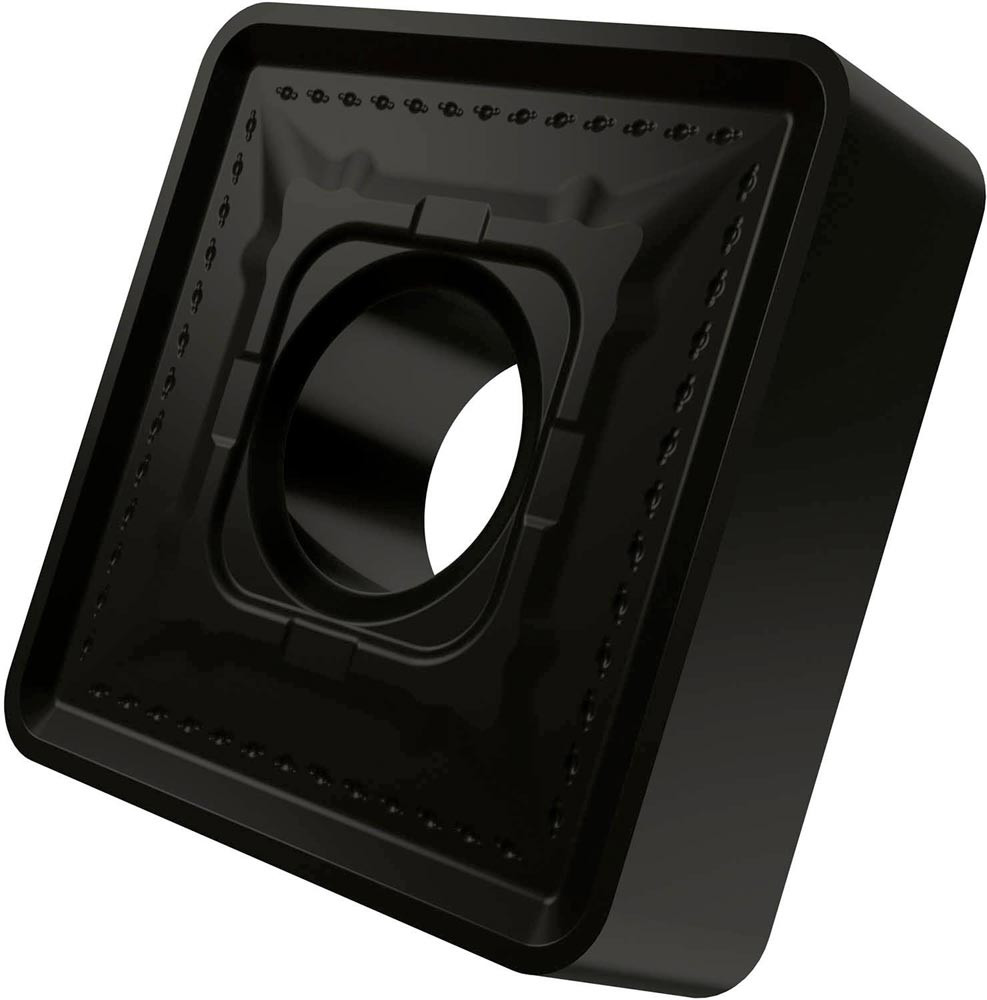 Doppelseitige negative Drehwendeschneidplatte · Viereckig mit Innenkreisdurchmesser von 19.05mm · 6.35mm Dick · 2.4mm Radius und Indexgenauigkeit nach ISO-Toleranzklasse-M · Spanbrecher HR2 · im Substrat T9335 · MT-CVD beschichtet functionally graded WC-Co carbide im ISO-Bereich P20 -P45 · zum schruppen bis schweres schruppen bearbeiten von Stählen