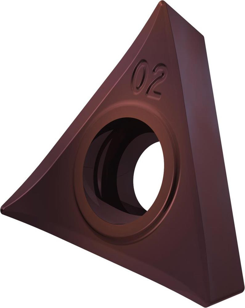 Einseitige positive Drehwendeschneidplatte · Triangular mit 7° Freiwinkel · Innenkreisdurchmesser von 6.35mm · 2.38mm Dick · 0.2mm Radius · Indexgenauigkeit nach ISO-Toleranzklasse-G · Spanbrecher SF3 mit verrundeter Schneidkante · im Substrat T8415.