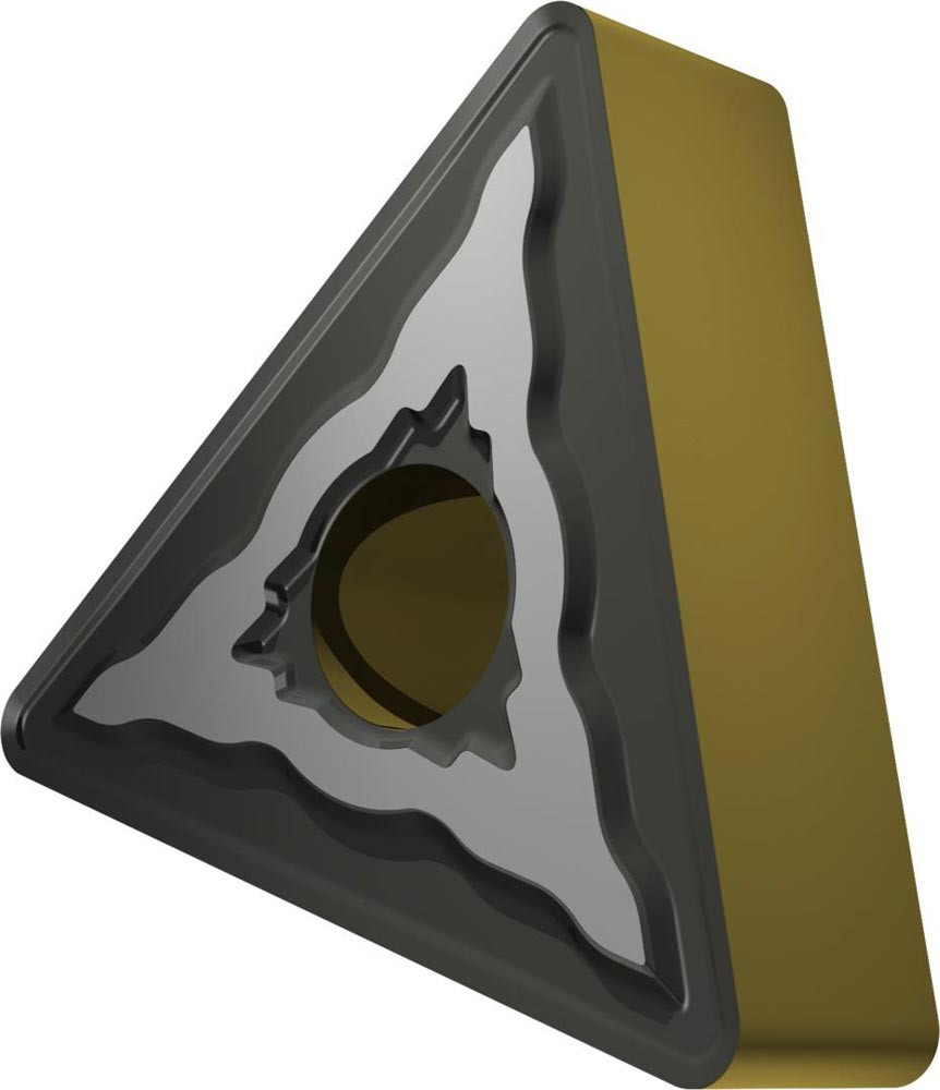 Doppelseitige negative Drehwendeschneidplatte · Triangular mit Innenkreisdurchmesser von 9.525mm · 4.76mm Dick · 0.8mm Radius · Indexgenauigkeit nach ISO-Toleranzklasse-M · Spanbrecher NMR mit verrundeter Schneidkante · im Substrat T9415 · MT-CVD beschichtet WC-Co Substrat im ISO-Bereich P05 -P30 · zum schlichten bis schruppen bearbeiten von Stählen