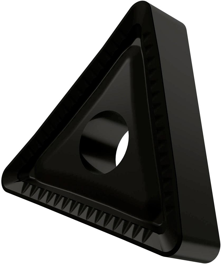 Doppelseitige negative Drehwendeschneidplatte · Triangular mit Innenkreisdurchmesser von 15.875mm · 6.35mm Dick · 1.6mm Radius · Indexgenauigkeit nach ISO-Toleranzklasse-M · Spanbrecher HR mit verrundeter Schneidkante · im Substrat T9325 · MT-CVD beschichtet functionally graded WC-Co carbide im ISO-Bereich P15 -P35 · zum schruppen bis schweres schruppen bearbeiten von Stählen