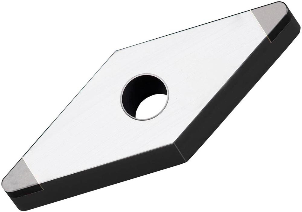 Wendeschneidplatte zum Hartdrehen mit 2 einseitig gekippten CBN-Ecken · 35° Rhomboid mit Innenkreisdurchmesser 9.525mm · 4.76mm Dick · 0.4mm Schneidenradius · Wiederholgenauigkeit nach ISO-Toleranzklasse G · verrundeter und facettierter Schneidkante T-land -20°/0.1mm · im Substrat TB310 · unbeschichtetes CBN im ISO-Bereich H01-H10 · zur Hochvorschub Bearbeitung von gehärtetem Stahl