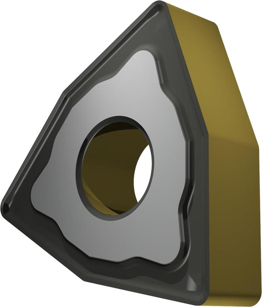Doppelseitige negative Drehwendeschneidplatte · 80° Trigon mit Innenkreisdurchmesser von 12.7mm · 4.76mm Dick · 0.8mm Radius · Indexgenauigkeit nach ISO-Toleranzklasse-M · Spanbrecher NM mit verrundeter Schneidkante · im Substrat T9415 · MT-CVD beschichtet WC-Co Substrat im ISO-Bereich P05 -P30 · zum schlichten bis schruppen bearbeiten von Stählen