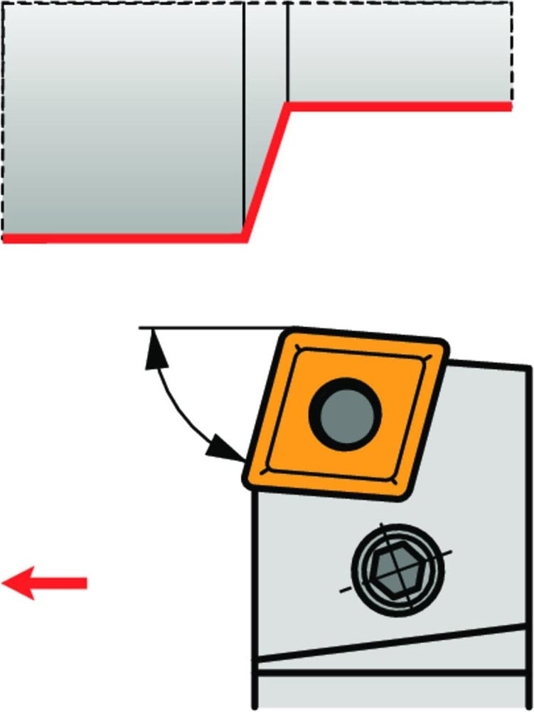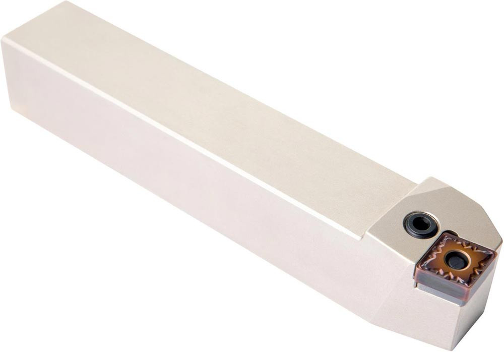 Dreh-Trägerwerkzeug mit Kniehebelklemmung zum spannen von 80° Rhombus negative Wendeschneidplatten mit einem Innenkreisdurchmesser von 15.575mm · 6.35mm Dick (ISO Bezeichnung CN.. 1606.. ) · linke Ausführung zum 75° Stirndrehen mit Zylinderschaft · 32mm Werkzeughöhe x 32mm Breite x 170mm Länge für Kegeldrehen und Längsdrehen ohne Schulter