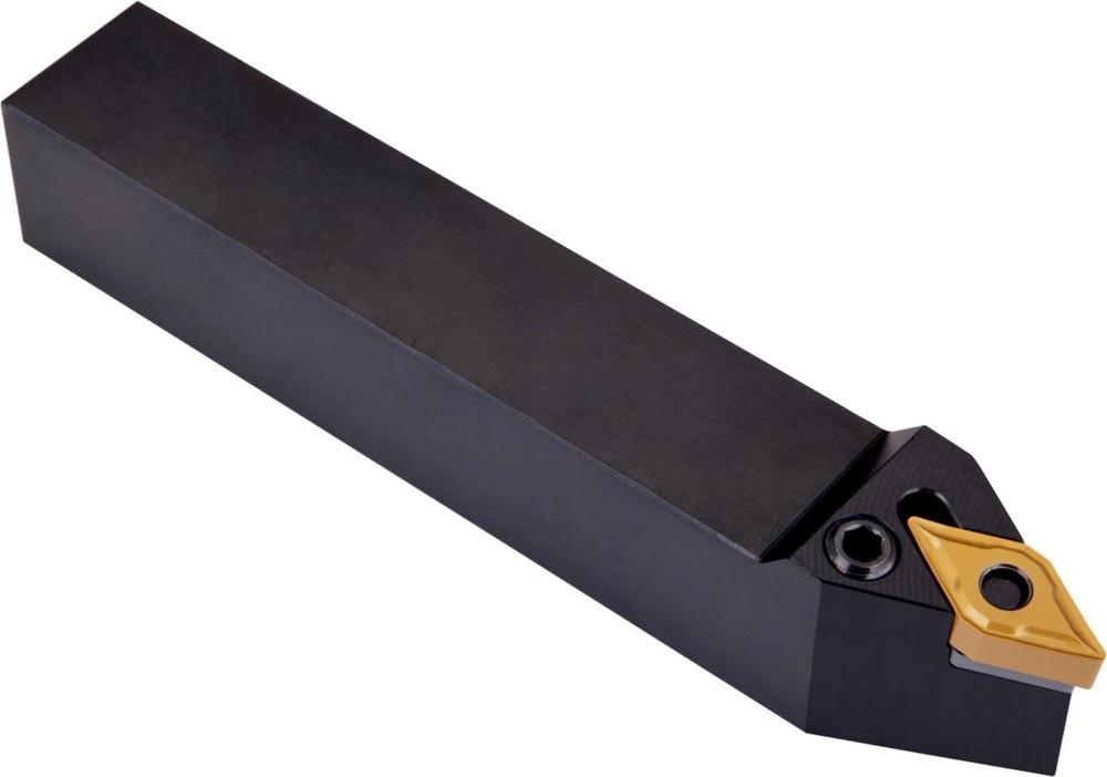 Dreh-Trägerwerkzeug mit Kniehebelklemmung zum spannen von 55° Rhombus negative Wendeschneidplatten mit einem Innenkreisdurchmesser von 9.525mm · 4.76mm Dick (ISO Bezeichnung DN.. 1104.. ) · linke Ausführung zum 62°30' Stirndrehen mit Zylinderschaft · 20mm Werkzeughöhe x 20mm Breite x 125mm Länge für Kopierdrehen in einer und mehreren Richtungen
