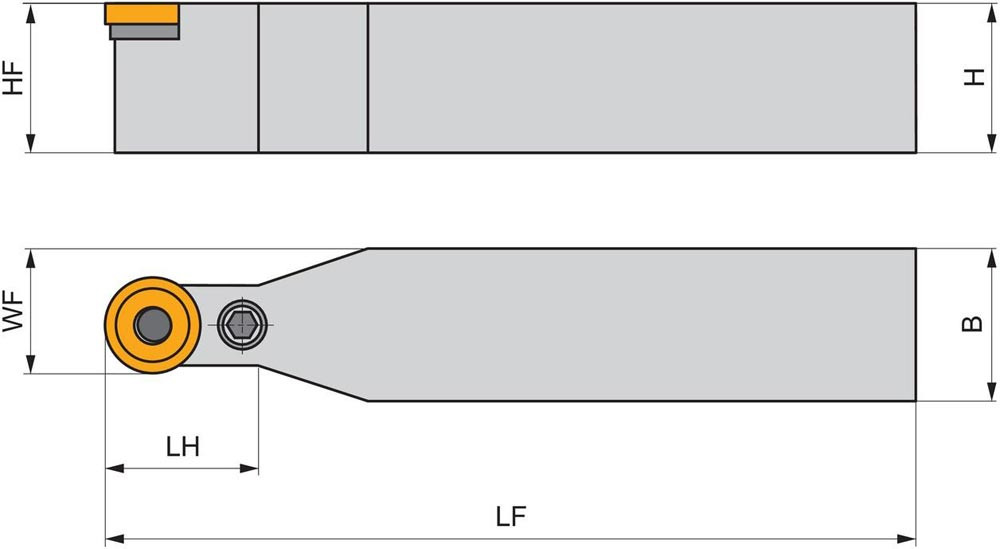 Dreh-Trägerwerkzeug mit Kniehebelklemmung zum spannen von Rund positive Wendeschneidplatten mit einem Durchmesser von 32mm · 9.52mm Dick (ISO Bezeichnung RCMX 3209MO ) · neutrale Ausführung zum Stirn-and Längsdrehen mit Zylinderschaft · 50mm Werkzeughöhe x 50mm Breite x 400mm Länge für Kegeldrehen · Kopierdrehen in einer und mehreren Richtungen und Längsdrehen ohne Schulter