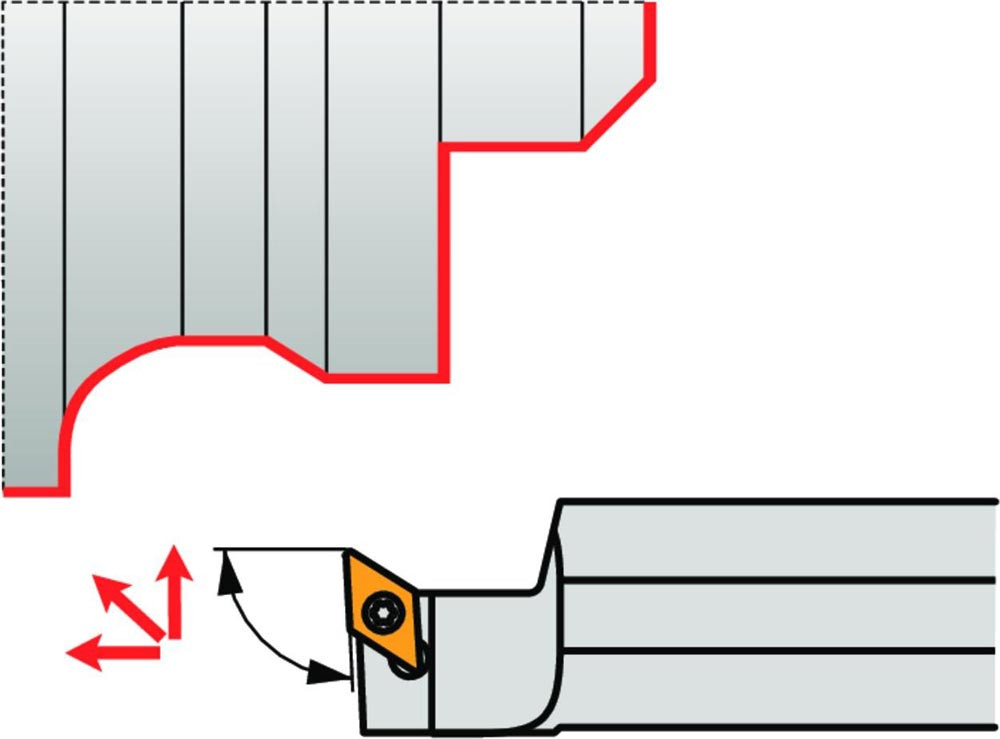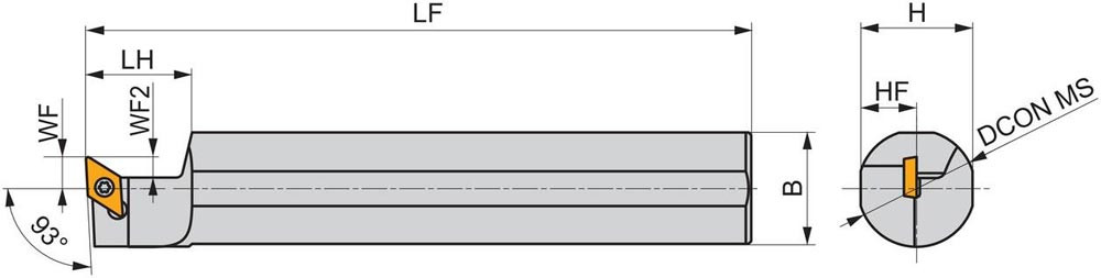 Drehmeißel mit Schraubklemmung · auch kompatibel für Langdrehautomaten zum spannen einer 55° Rhombisch positive Wendeschneidplatte mit einem Inkreisdurchmesser von 6.35mm · 2.38mm Dicke (ISO Bezeichnung DC.. 0702.. ) · linke Ausführung 93° Stirndrehen mit abgesetztem Schaft · Werkzeugstahl ohne Innenkühlungsbohrungen · 20mm diameter x 125mm Länge
