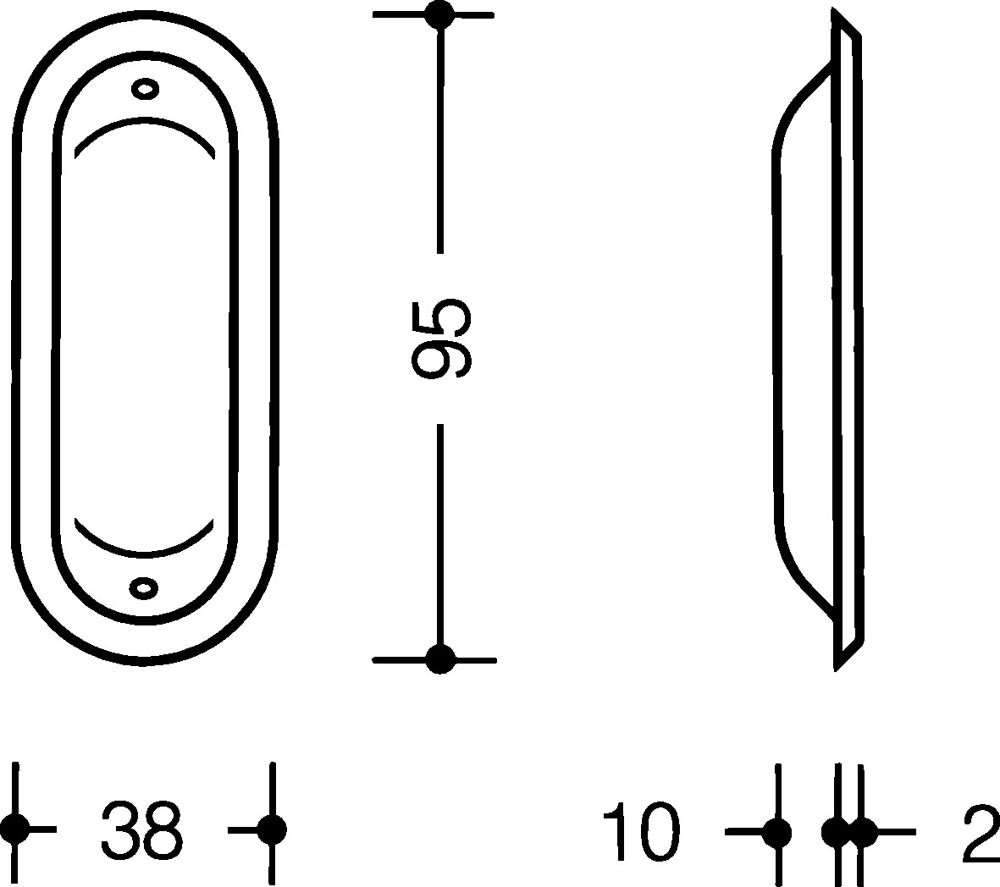 aus durchgefärbtem, mattem Polyamid · ovale Form, 95 x 38 mm · Einlassmaße 82 x 30 mm · Einlasstiefe 10 mm · mit Griffmulde