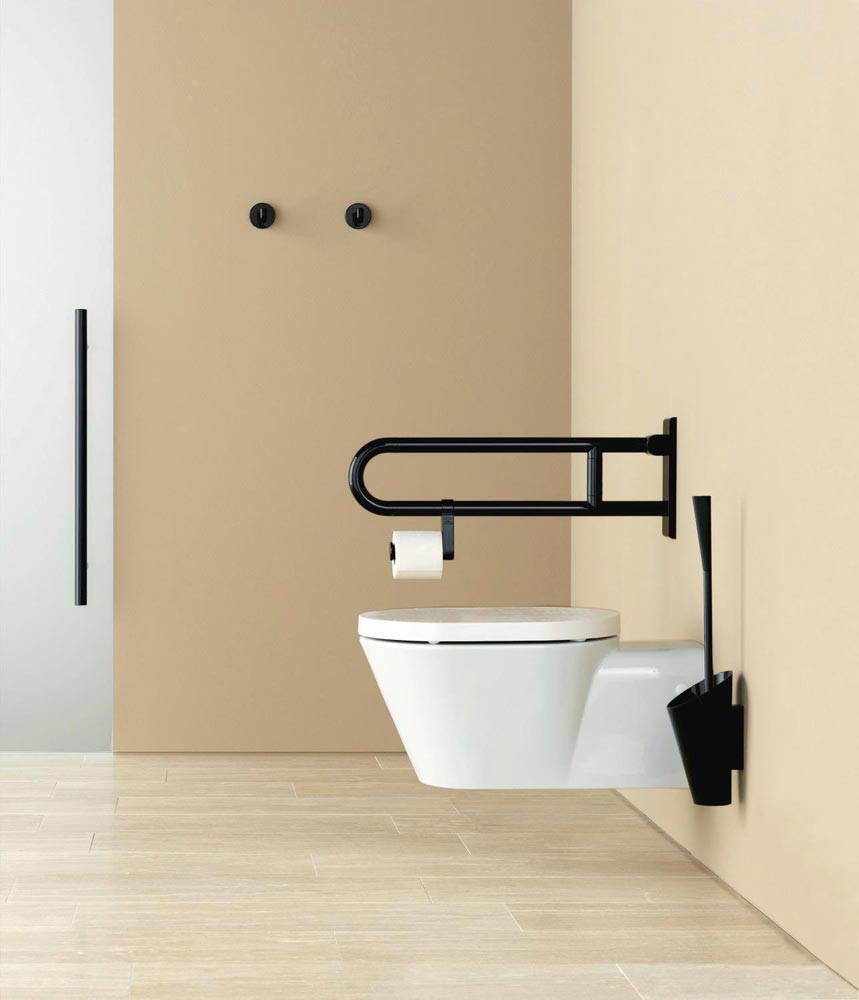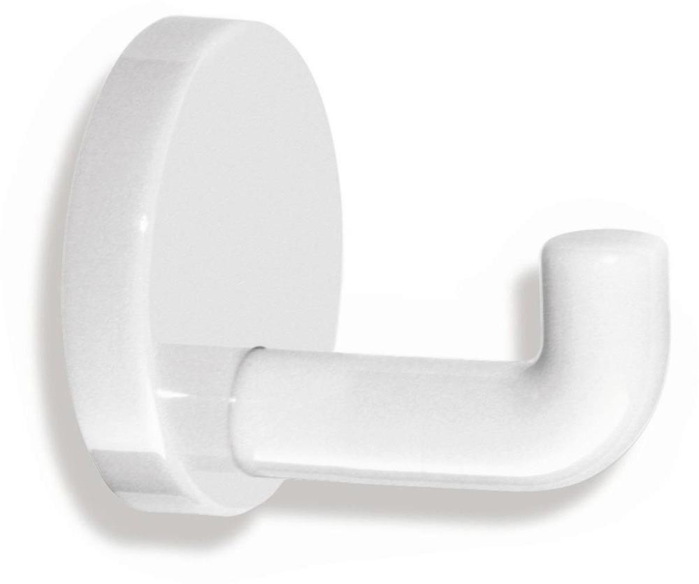 rechtwinklig gebogener, zylindrischer Haken mit Befestigungsrosette · der Haken dient zum Aufhängen von Kleidungsstücken und anderen Utensilien · leicht zu reinigen · diebstahlgeschützt durch verdeckte Verschraubung · 65 mm tief, Rosettendurchmesser 60 mm · aus hochwertigem Polyamid in ausgewählten HEWI Farben