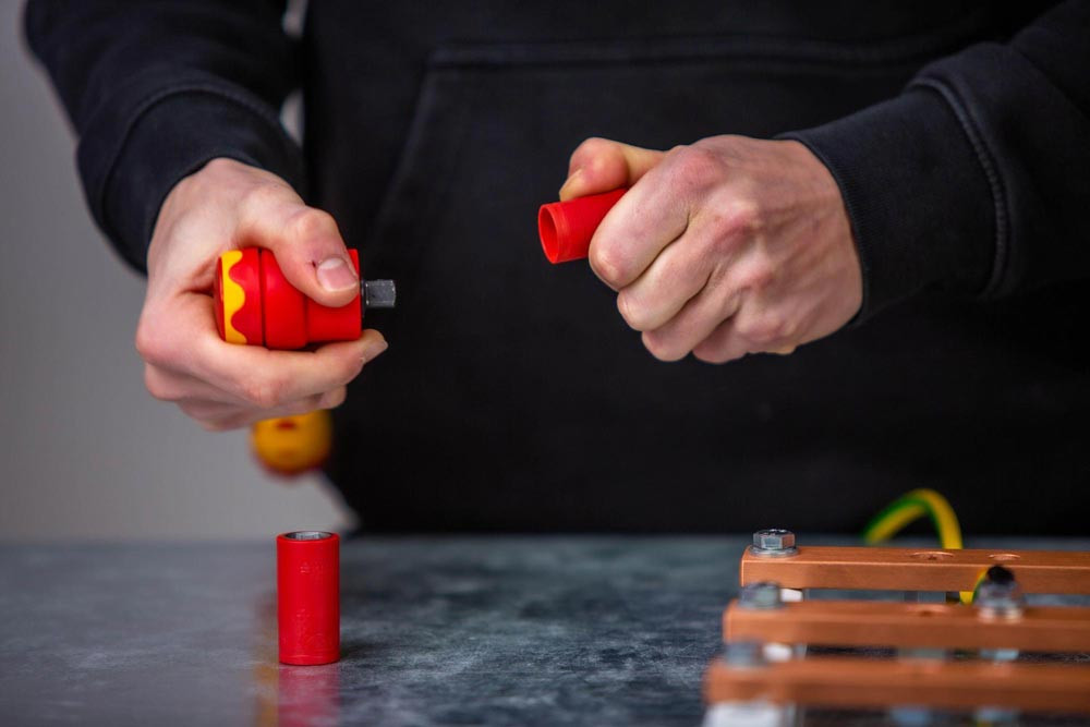 variabel einstellbares Drehmoment · jedes Werkzeug einzeln bei 10.000 V AC getestet und zugelassen für 1.000 V AC · sichere Installation von Klemmen und Muffen, Leiteranschlüssen, Verschrauben von Sammelschienen, für Arbeiten im Bereich von spannungsführenden Teilen bis 1.000 V AC · Genauigkeit : +-4% · 10° Schaltwinkel · Rechts-/ Linkslauf · durch Herausziehen und Drehen des Griffendes kann der benötigte Drehmomentwert von Hand eingestellt werden · die auf den 1/4″ Vierkantantrieb gesteckten Steckschlüssel bieten dank der Kugelsicherung einen sicheren Halt · beim Festziehen knickt die Drehmomentmechanik im Schlüssel bei Erreichen des eingestellten Drehmomentwerts spürbar ab · stückgeprüft gemäß Norm EN/IEC 60900 · nur zu verwenden mit isolierten Wiha Steckschlüsseleinsätzen · inkl. Werksprüfprotokoll