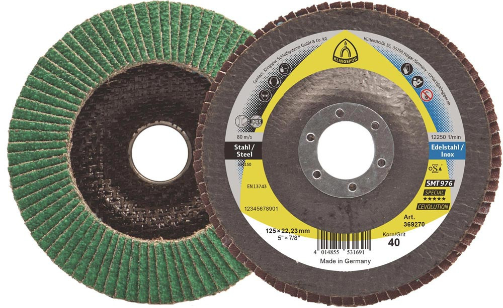 Fächerscheibe SMT 976 Ø 125 mm Körnung 40 mm gewölbt 6 Edelstahl keramischer Korund E6513584