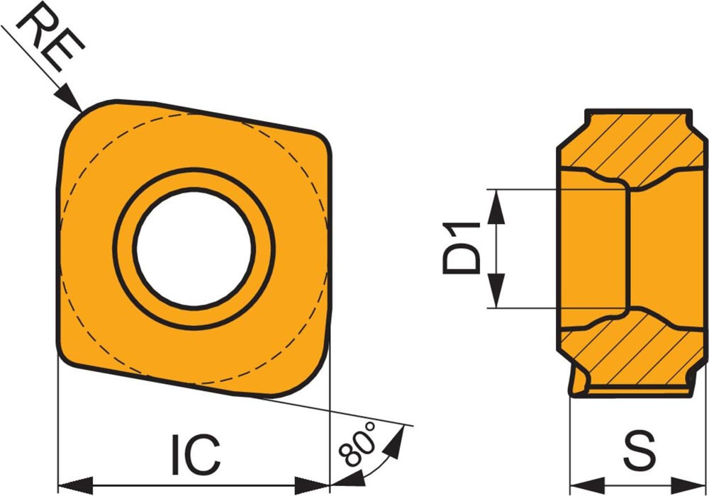 Doppelseitige Fräswendeschneidplatte CNHX 0502 · 80° Rhombisch und Wiperdesign für eine maximale Schnitttiefe von 1.0mm · mit 0.5mm Eckenradius · eine Indexierungsgenauigkeit gemäß ISO-Toleranzklasse-H und WM Geometrie mit verrundeter Schneidkante · M4310 PVD Beschichtung WC-Co Feinkornsubstrat in den ISO-Gruppen K05 -K15 und H05 -H15 zum bearbeiten von Gusseisen und gehärtetem Stahl mit Kopierplanfräsern SCN05C
