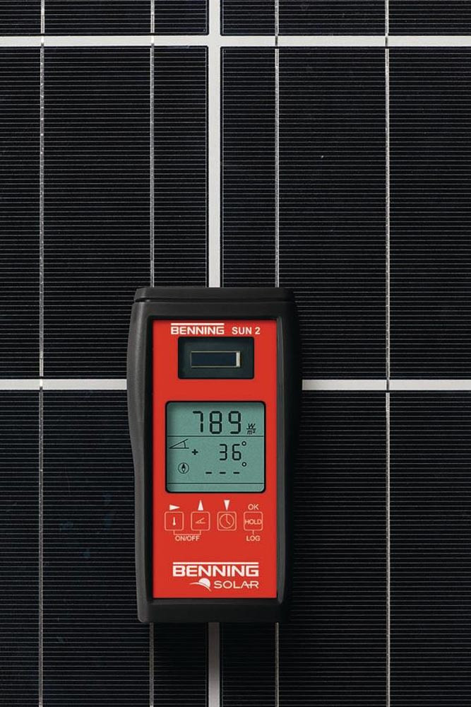 Einstrahlungs- und Temperaturmessgerät BENNING SUN 2 mit integriertem Digitalkompass zur Dachausrichtungs- und Neigungsmessung