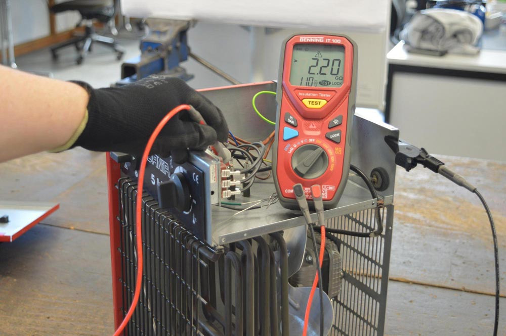 Leerlaufspannung (Uo/c) bis 1500 V DC über 4 mm Sicherheitsbuchsen (PV-Kurzschlussschalter, BENNING CM 3-PV), Kurzschlussstrom (Is/c) bis 23 A DC (bei 1500 V) sicher schalten, messbar über Kurzschlussbrücke (MC4 kompatibel) und Strommesszange, Isolationswiderstand (Riso) über 4 mm Sicherheitsstecker (PV-Kurzschlussschalter, BENNING IT 100), Isolationswiderstand bei Kurzschluss und im Leerlauf des PV-Strangs messbar