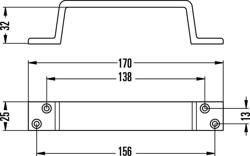 Handgriff 420 Ausladung 32 mm Länge 170 mm Breite 25 mm Aluminium silber eloxiert Anzahl Löcher 4