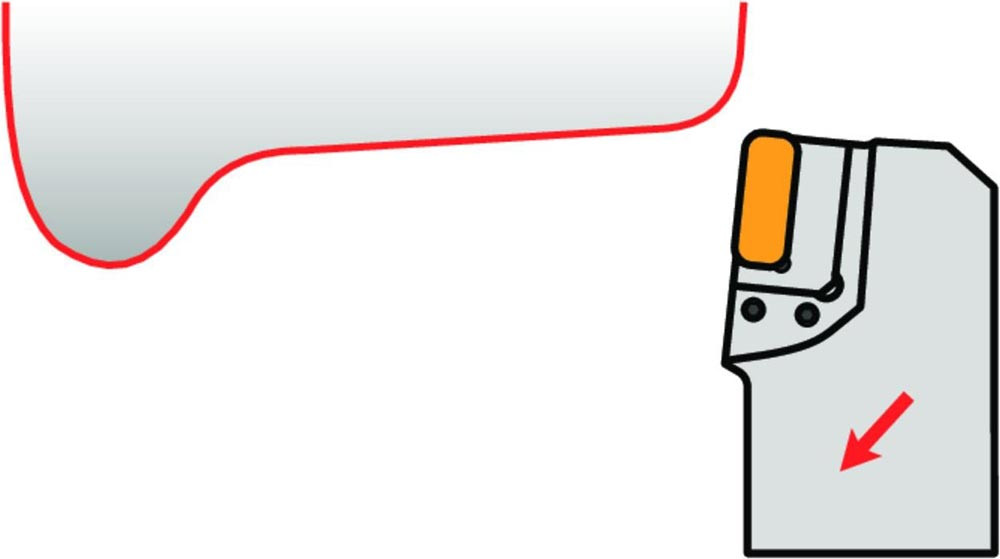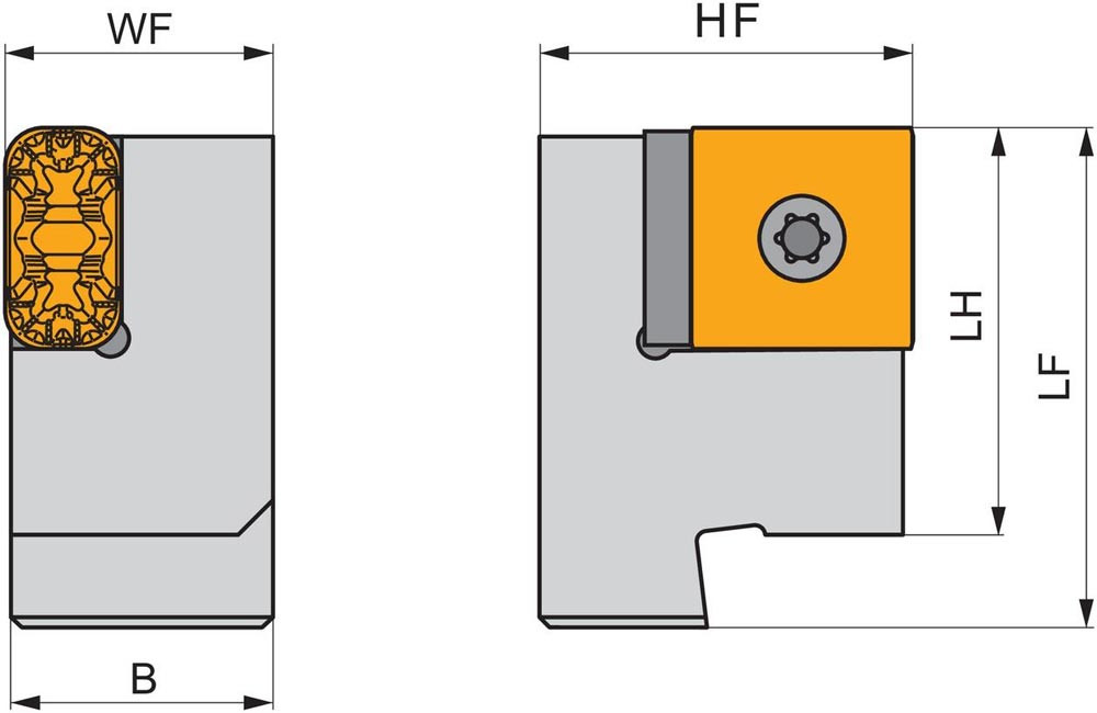 Modular Drehsystem mit Knieheblklemmung zum spannen von Rechteckig negative Wendeschneidplatten mit einer Hauptschneidenlänge von 30mm (ISO Bezeichnung LN.X 3019.. ) · für die Radsatzbearbeitung · zur Montage mit DKTR 5055 X (A1/A2) für Kegeldrehen und Längsdrehen ohne Schulter