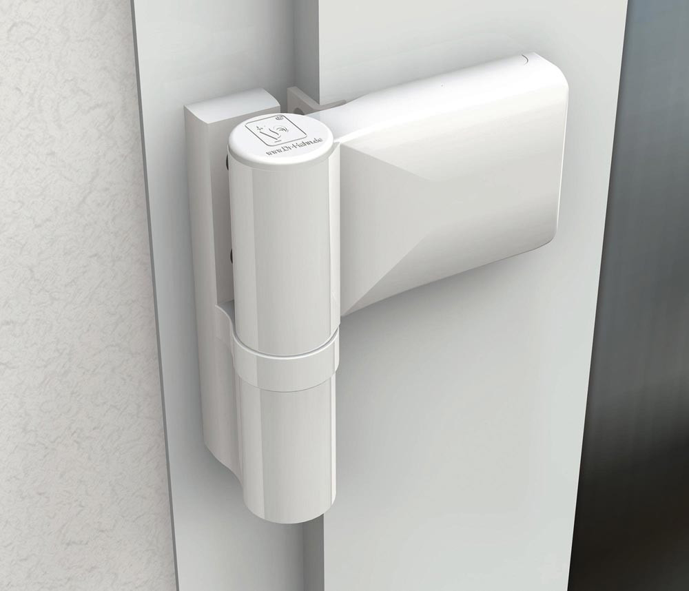 KT-Fix · Aufschraubband für Haupt- und Nebeneingangstüren · DIN links / rechts verwendbar · dreidimensional verstellbar · gefertigt aus stranggepresstem Aluminium · Kunststoffteile weiß · Lagerstelle wartungsfrei