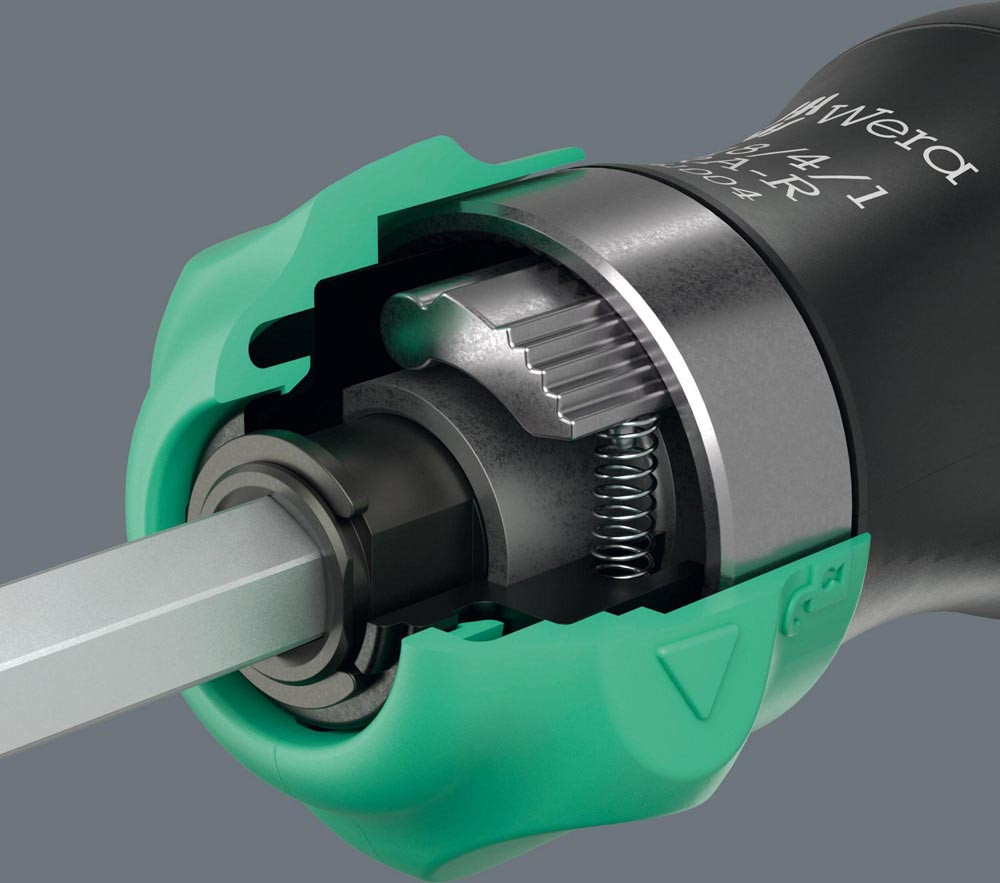 geeignet für Bits mit 1/4″-Außensechskantantrieb nach DIN ISO 1173-C 6,3 und E 6,3 und Wera Anschluss-Reihen 1 und 4 · im Griff integrierte Ratsche mit Feinverzahnung, intuitives Umschalten · für präzise Arbeiten kann die Ratschenmechanik mit der 0-Position deaktiviert werden · 1/4″-Innensechskantaufnahme, magnetisch · Verbindungsteil · Teleskopklinge · Rapidaptor-Technologie mit rapid-in, rapid-out, rapid-spin, chuck-all und single-hand-Funktion · 6 BiTorsion Bits für lange Lebensdauer, zähhart, für den universellen Einsatz · Take it easy Werkzeugfinder: Mit Abtrieb-Farbkennzeichung und Größenstempel für einfaches Finden des gewünschten Bits · Kraftform-Griff mit Abrollschutz, mehrkomponentig, integriertes Magazin