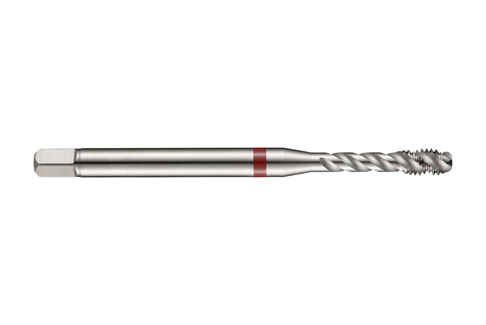 Spiral genuteter Gewindebohrer Red Shark · Anschnittform C mit 2-3xP Gewindeanschnitt · ISO-Metrisches Gewinde M16 mit 2.00 mm Steigung und 6H Toleranzklasse · Abmessungen nach DIN 376 Standard mit 12.0mm Schaft und 9.0mm Vierkantantrieb · HSSE-PM mit blanker Oberfläche und 45° Helixwinkel 2.5xD Sacklochgewinde in Kohlenstoffstahl · legierter und Werkzeugstahl