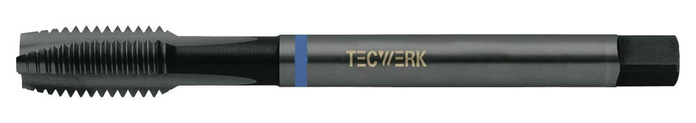 HSS-Co · Form B · Typ VA · nitriert und vaporisiert · Blauring · geradegenutet · Flanken hinterschliffen · Whitworth-Rohrgewinde G · nach DIN ISO 228 · für Durchgangsgewinde · für schwer zerspanbare Werkstoffe, z.B. rost-, säure- und hitzebeständige Stähle > 850 N/mm² Festigkeit