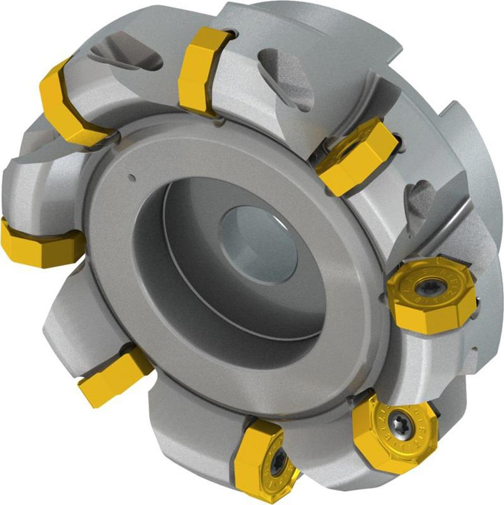 Planfräser mit doppelt negativer Geometrie welche 10 aus ONMX 0605.. · ONMX 0605..-W oder SNMX 1705.. doppelseitige Wendeschneidplatte · Schneiddurchmesser 100mm bis maximal 110,8mm mit 43° Anfahrwinkel und 32mm Bohrung gemäß DIN 8030-A · 50mm funktional und · durchgehende Kühlung zum Planfräsen und Entgratenmit einer maximalen Schnitttiefe von ON.. 4mm · SN.. 7mm