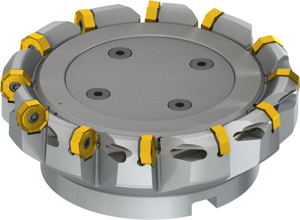 Planfräser mit doppelt negativer Geometrie welche 12 aus ONMX 0605.. · ONMX 0605..-W oder SNMX 1705.. doppelseitige Wendeschneidplatte · Schneiddurchmesser 160mm bis maximal 170,8mm mit 43° Anfahrwinkel und 40mm Bohrung gemäß DIN 8030-C · 63mm funktional und · durchgehende Kühlung und ungleicher Teilung zum Planfräsen und Entgratenmit einer maximalen Schnitttiefe von ON.. 4mm · SN.. 7mm