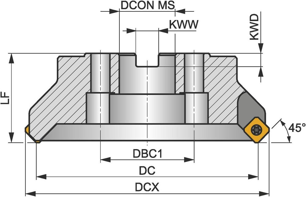 Planfräser ISO 200C16R-S45SD13F-C D.60mm Schneid-D.212,8mm