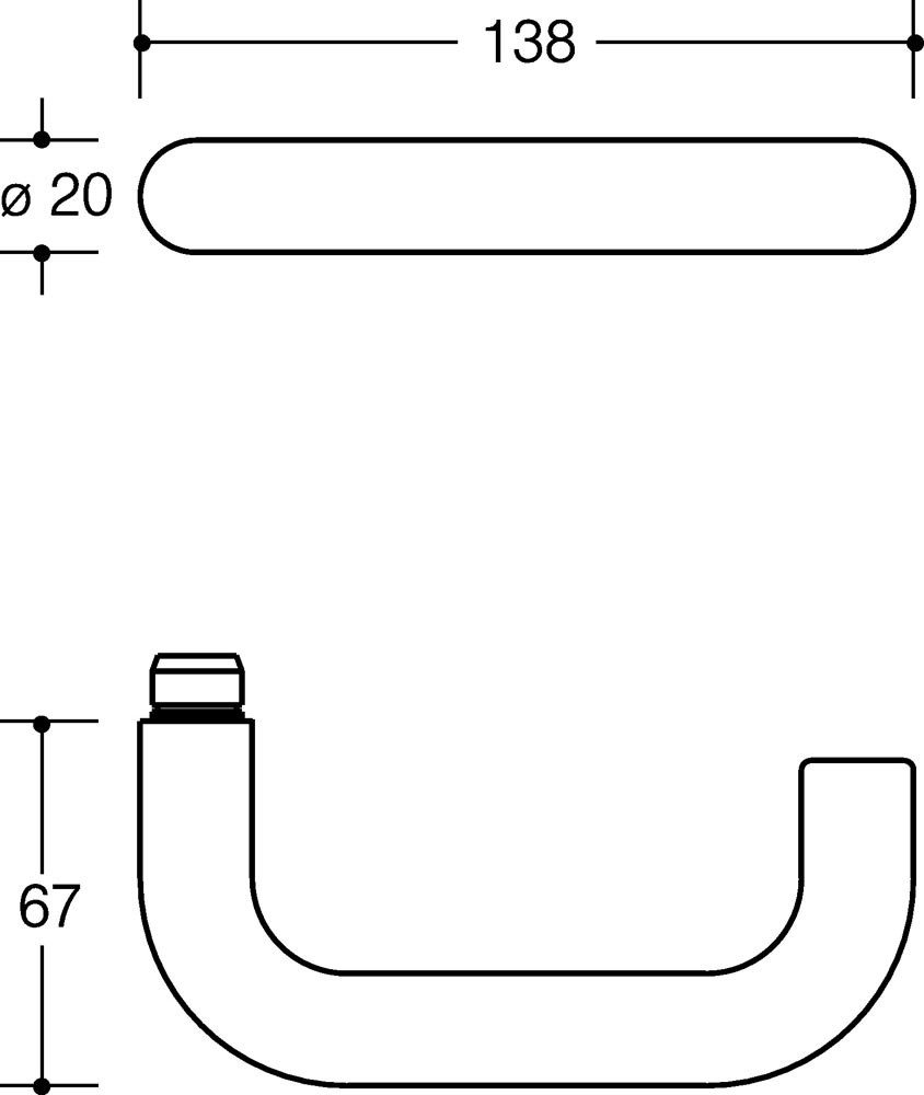 Türdrücker in U-Form aus Polyamid mit durchgehendem Stahlkern bis in das Drückerende, durchgängig eingefärbt, Durchmesser 20 mm, mit Ansatzführung und Rastnut, Montage durch einfaches Einrasten der Türdrücker in die auf der Tür vormontierten Unterteile.