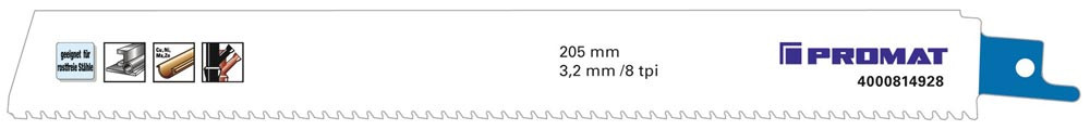 Säbelsägeblatt Länge 228 mm Breite 25 mm Zahnteilung TPI 8 3,2 mm Karte a 1 Stück E6439304
