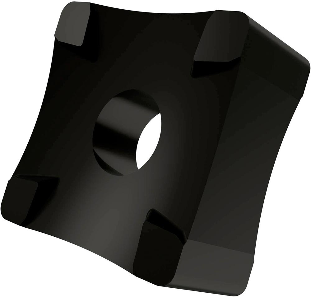 Doppelseitige Scarfing Wendeschneidplatte · quadratisch mit einer Hauptschneidenlänge von 25.4mm · 12.2mm dick und einen Arbeitsradius von 100mm für Rohrdurchmesser von 115 bis 145mm · T9335 MT-CVD beschichtetes funktionelles WC-Co Hartmetall innerhalb des ISO-Substratsbereichs P20-P45/M15-M40 und S15-S25 zum entgraten von Stahl · Edelstahl und Superlegierungen Rohren und Röhren